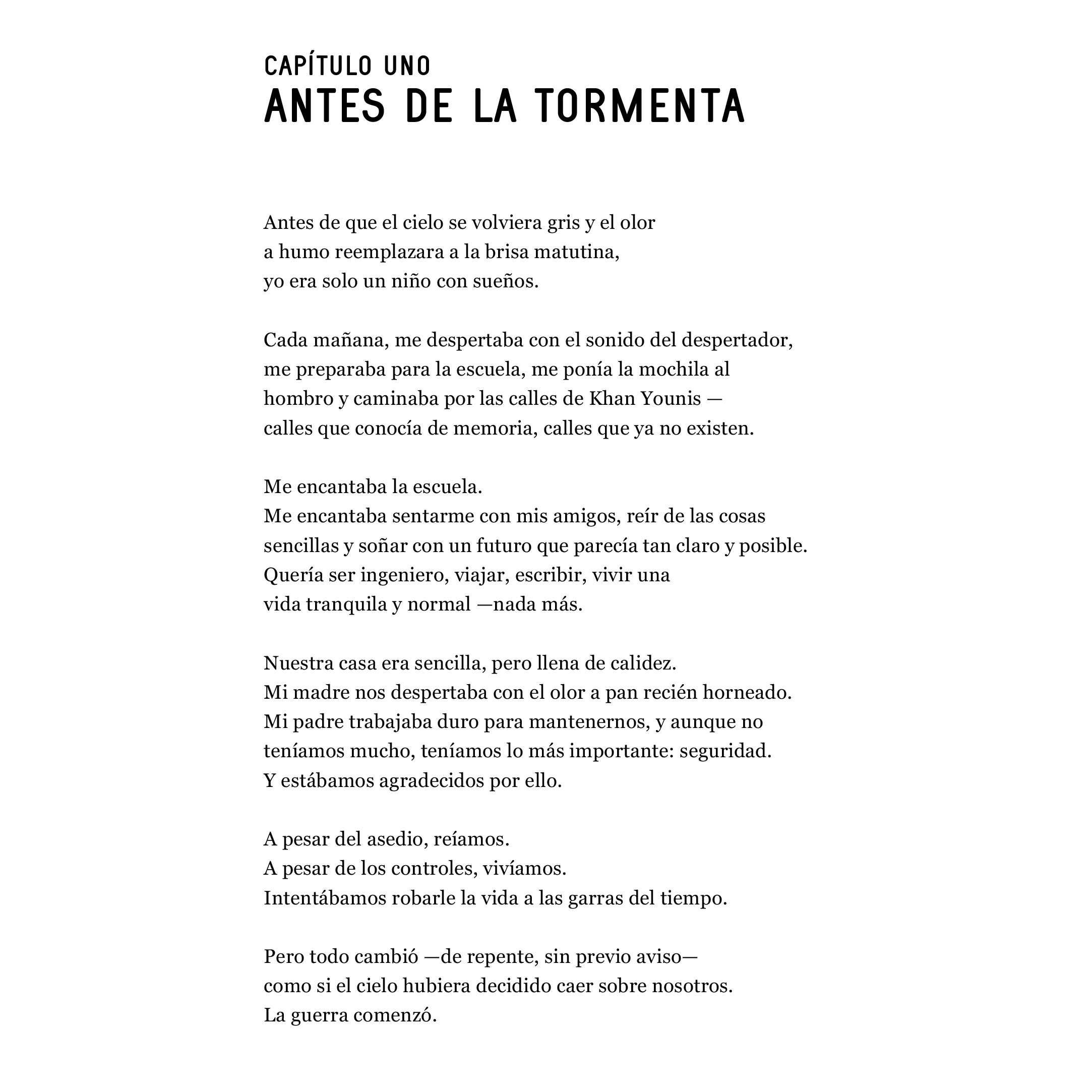 Este es su primer libro, escrito con valentía en medio de la destrucción.