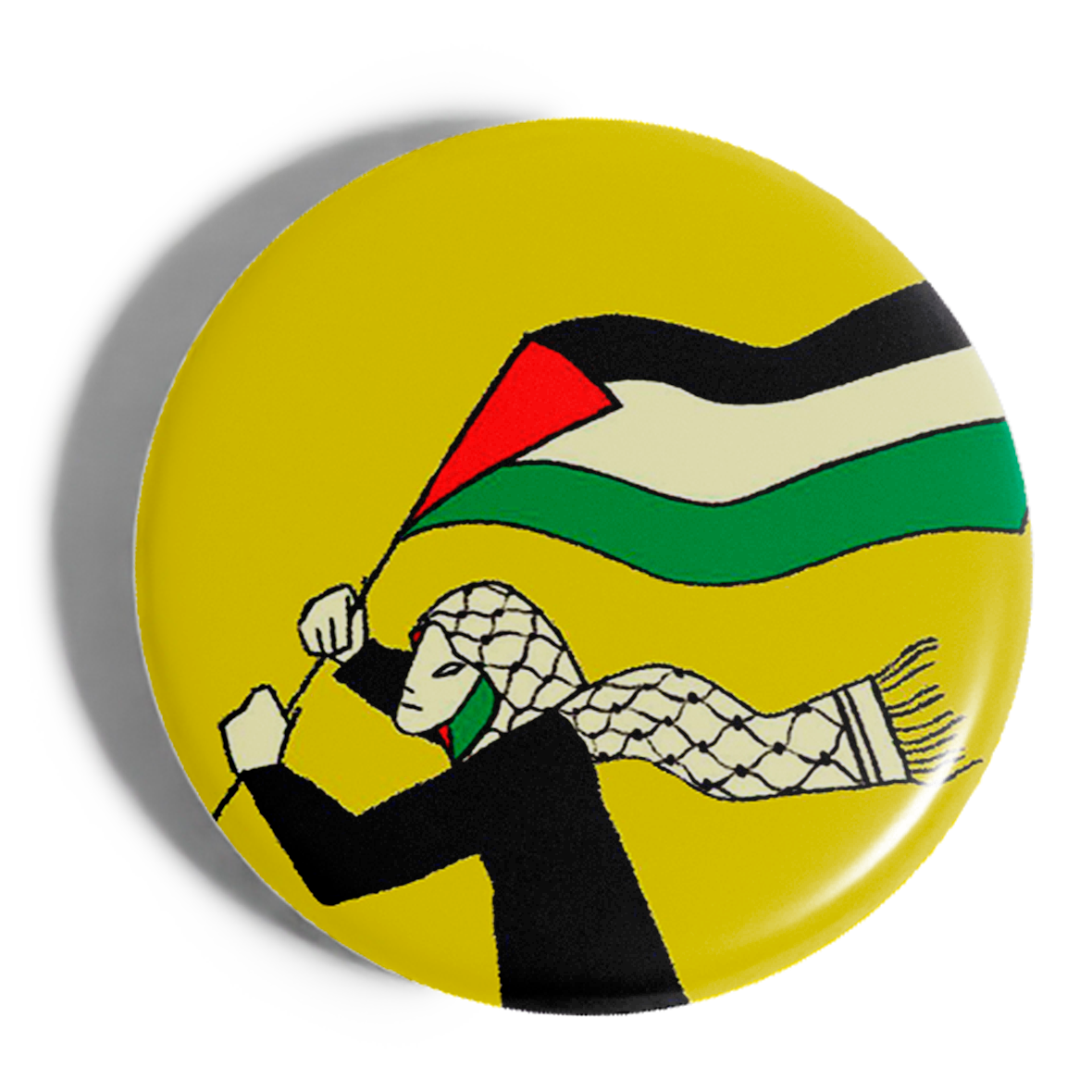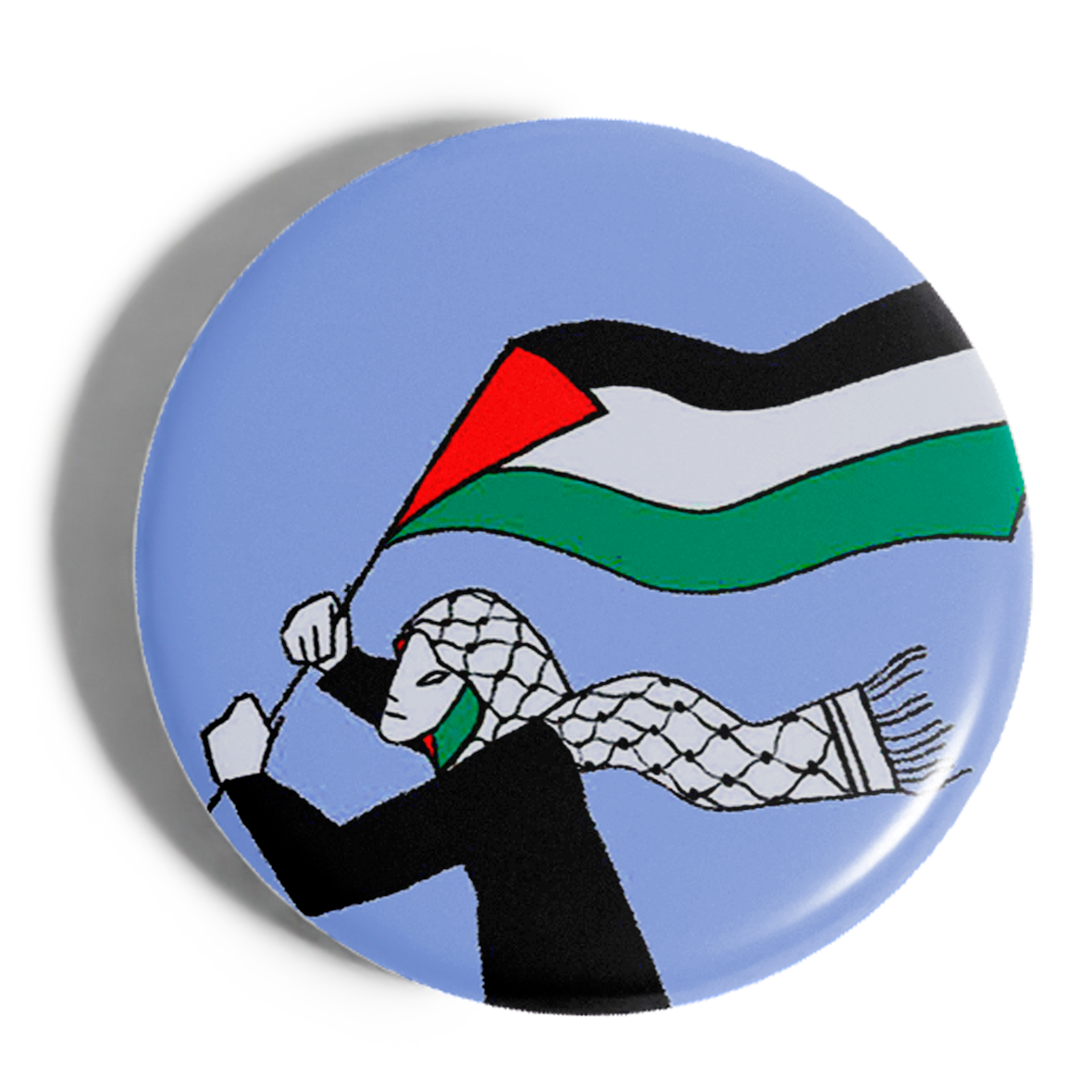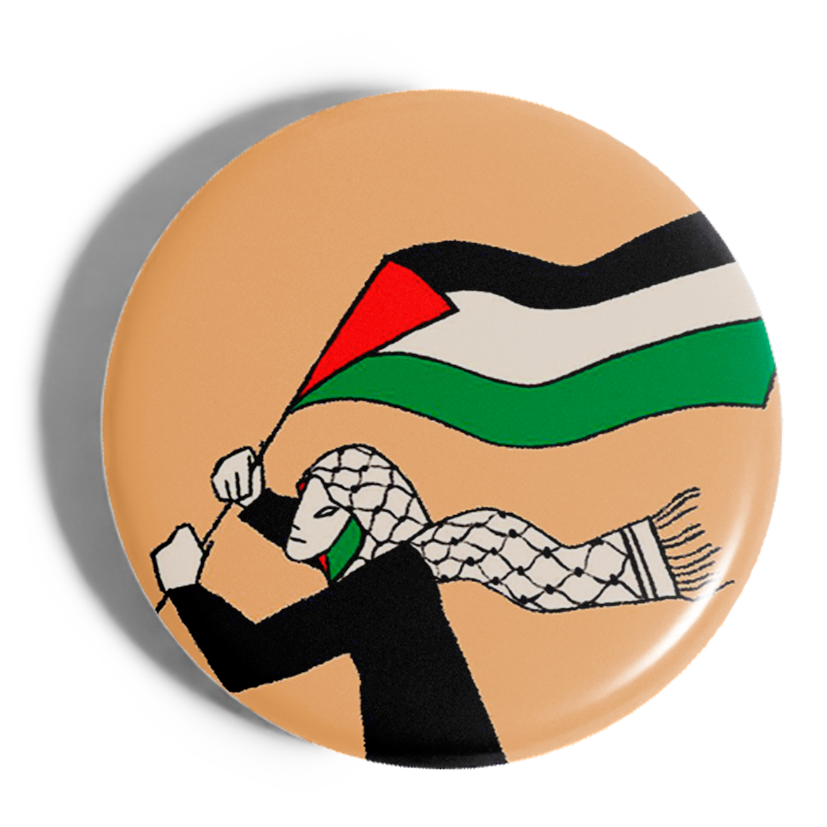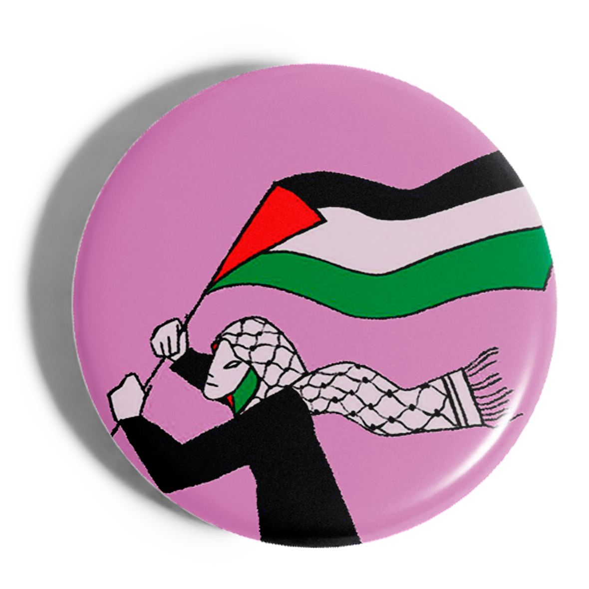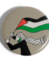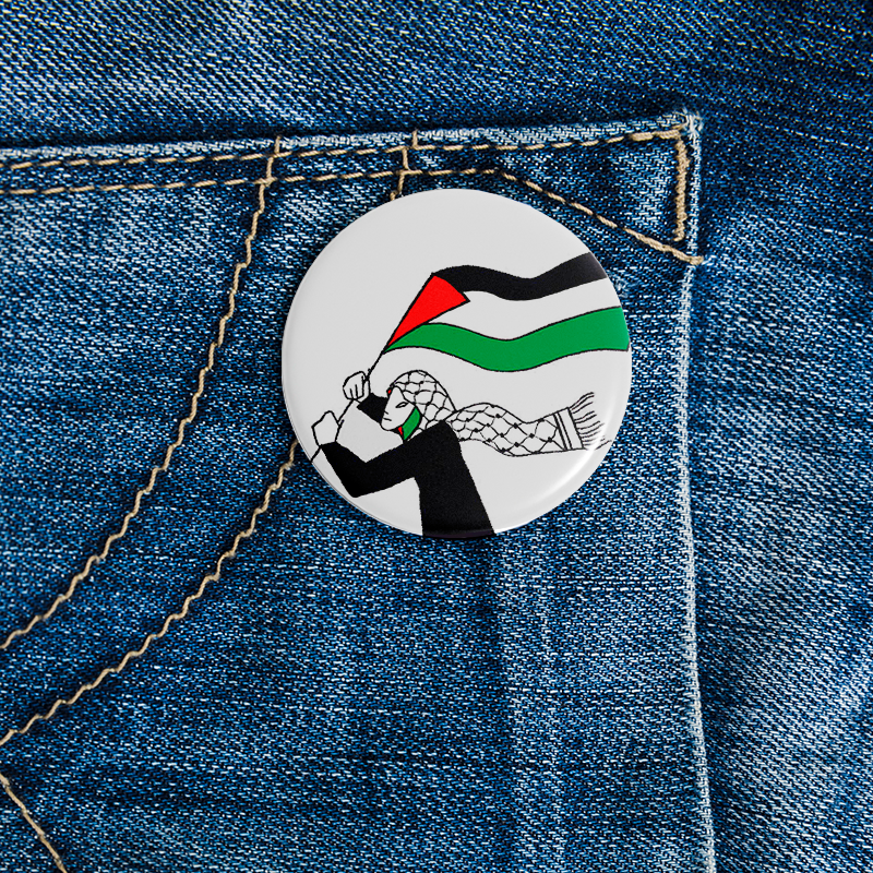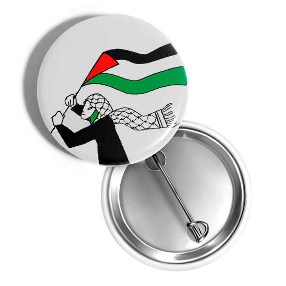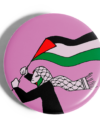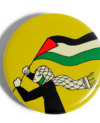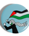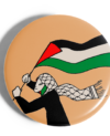 Chapa mujer con kufiya y bandera.